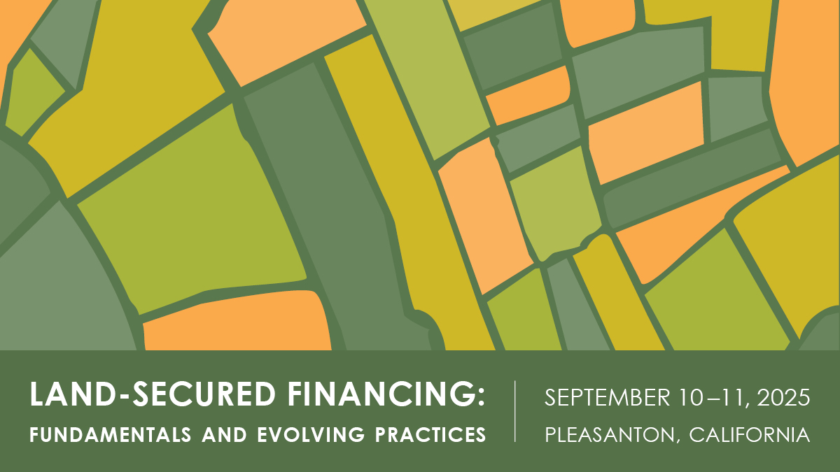 This seminar will deliver comprehensive education on the land-secured financing process from district preformation through project implementation to ongoing administration. Day 1, participants will be immersed for a full day in the strategic planning and application mechanics of land-secured financing, providing an introduction to both Mello-Roos Community Facilities Districts (CFD) and Assessment Districts as well as an ongoing focus on CFDs. Day 2 will build from the fundamental land-secured topics to examine current CFD formation, financing, and administration practices, and explore the strategic combination of CFD and tax increment financing tools to meet a variety of current public finance challenges. Day 2 will also provide a summary of real estate market trends, bond market trends and challenges, and a legal, legislative, and regulatory update.